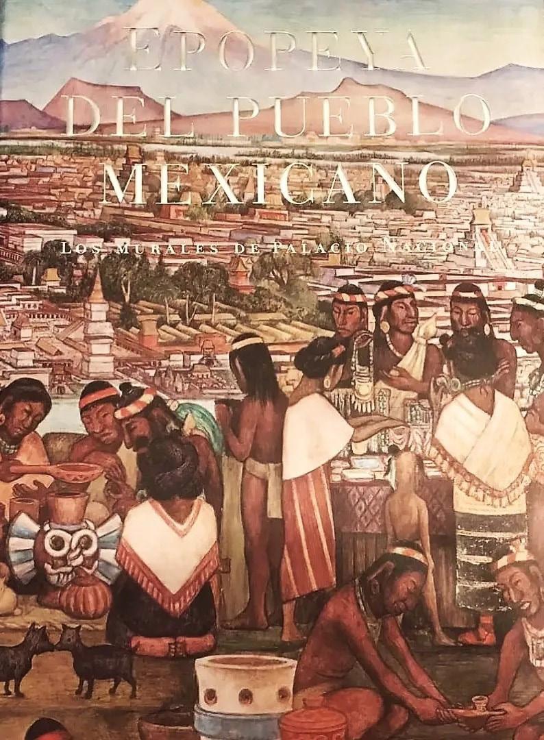 y tintoreros” muestran la riqueza de tradiciones, la diversidad de técnicas productivas y prácticas alimenticias en Mesoamérica. Entre 1944 y 1945, Diego creó murales como “Vista de Tenochtitlan desde el Mercado de Tlatelolco”, que resaltan el sinfín de conocimientos ancestrales de las diferentes civilizaciones mesoamericanas y su impacto en el mundo moderno. Utilizando códices como el Ixtlixóchitl y el Mendoza para representar el entorno y las escenas de comercio, destacó la relevancia del medio natural y los productos en la vida de los Mexica y sus vecinos, al tiempo que rindió homenaje a su maestro José María Velasco en las elevaciones nevadas del fondo.