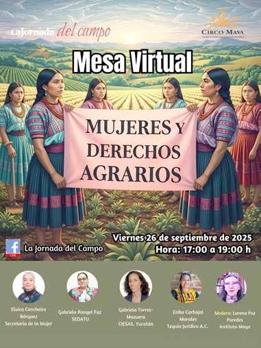 El pasado 26 de septiembre se realizó la Mesa Virtual de análisis: Mujeres y Derechos Agrarios, convocada por el Instituto de Estudios para el Desarrollo Rural ‘Maya’ y La Jornada del Campo con el fin de facilitar el debate y la reflexión sobre la nueva política agraria para mujeres rurales, a un año del gobierno de la presidenta Claudia Sheinbaum Pardo. Desde su campaña presidencial, con la firma del Acuerdo Nacional para una República Rural Justa y Soberana se estableció en el punto séptimo “impulsar el ejercicio pleno de los derechos de las mujeres campesinas, garantizando su acceso a la titularidad de derechos agrarios y ampliando su participación en los programas de desarrollo”. Ya como presidenta constitucional, derivado de sus 100 compromisos, en el apartado “República de y para las mujeres” se estableció en el compromiso número 53 que 150 mil mujeres serán reconocidas con derechos agrarios. En esta mesa participaron Erika Carbajal de la organización Tequio Jurídico de la región chontal de Oaxaca, Elvira Concheiro, subsecretaria de igualdad sustantiva en la Secretaría Federal de las Mujeres, Gabriela Torres-Mazuera del Centro de Investigaciones y Estudios Superiores en Antropología Social (CIESAS) Yucatán, y Gabriela Rangel Faz directora general de igualdad de género en la propiedad social de la Secretaría de Desarrollo Agrario, Territorial y Urbano (SEDATU). Dos servidoras públicas, una académica y una activista de organización social, especialistas en el tema, feministas y promotoras todas de la defensa de los derechos agrarios de las mujeres. Compartieron diagnósticos, acciones y propuestas, pensando desde distintos espacios institucionales, caminos