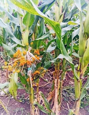 En esta zona se practica la actividad de dobla del maíz; en septiembre cuando la mazorca del maíz se encuentra en estado lechoso-masoso se realiza la “dobla”, con un machete se entrecorta el tallo de la planta a una altura de 1.2 metros aproximadamente, y el resto de la planta se dobla con la intención de permitir por un lado que se termine el proceso de secado del grano, y que la mazorca no se pudra por efecto de la lluvia, y por otro, para favorecer el crecimiento de cultivos de relevo. Unos días antes o después de la “dobla”, dependiendo del cultivo de relevo, se siembra frijol, jamaica, ajonjolí, algodón, cempasúchil (en un pequeño espacio), e incluso maíz de ciclo corto, muy probablemente de la raza Conejo. Estos cultivos de relevo pueden sembrarse en la parte media entre hileras del maíz, y/o sobre la misma hilera del maíz (como el caso del frijol). La jamaica y el ajonjolí no son cultivos mesoamericanos, pero ya se encuentran integrados a los sistemas productivos en esta zona.
