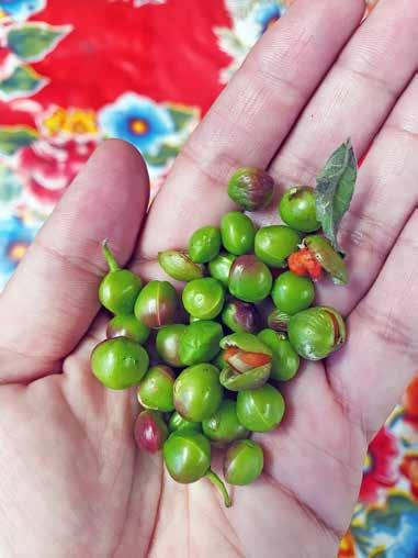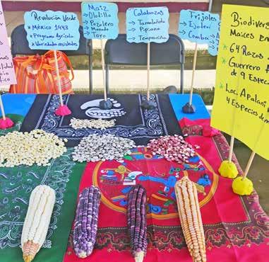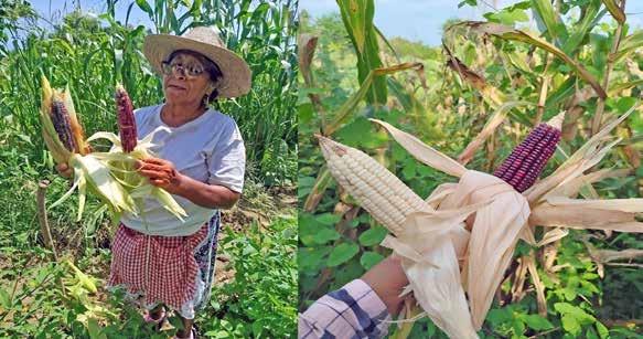 usos. Estas relaciones entre la diversidad biológica y cultural, se traduce y materializa en agrobiodiversidad. Con distintas características que se entrelazan simbióticamente: especies de frijoles, calabazas, chiles silvestres y domesticados con distintas formas, sabores y pungencia, variantes de jitomates y tomates de cáscara, algunos quelites aprovechados temporalmente: papalos, pipizas, verdolagas y un sinfín de bejucos comestibles. La base de nuestra alimentación es la agrobiodiversidad, por tanto, el cultivar los sistemas agrícolas tradicionales con semillas nativas y criollas, significa para las familias campesinas de Coyuca de Benítez: “contribuir a la soberanía alimentaria para hoy y mañana”.