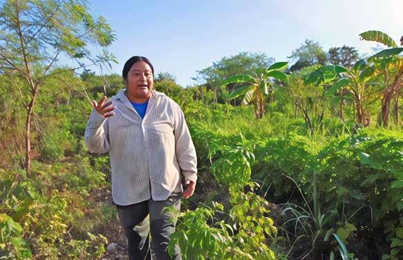 lado o que quiere atrás y eso está generando condiciones en las que la gente se ve forzada a vender o a entrar en esa lógica”, expresó Valiana en su solar de Sinanché. Ella lucha por la conservación de la tierra. Sea en su parcela, a unos kilómetros de Sinanché, o en el solar de su casa. En la parcela de una hectárea, acompañada de su pareja y de un compañero, trabajan la siembra con más de 300 variedades de plantas. En el solar, preparan bebidas fermentadas como cervezas y kefir –con los frutos que obtienen–, tienen gallinas, tres perros grandes y peludos, y la hortaliza de la que se alimentan.