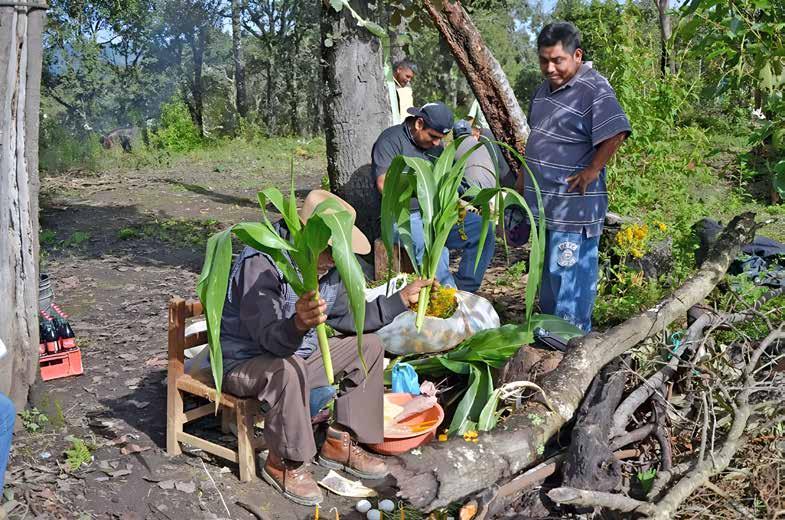 terquedad se sostiene de amplios repertorios de conocimiento y de prácticas adaptadas al lugar como una estrategia metabólica que, en palabras sencillas, organiza la vida familiar y comunitaria para producir poco de mucho (la milpa) -a diferencia del mucho de poco que enarbola el agronegocio desde el siglo XVI- mediante el arreglo del paisaje/territorio a lo largo de su ciclo reproductivo, al son que te ponga el maíz y de su familia la milpa. Esta estrategia multi-funcional, multivalente, polifónica, tiene como basamento unas maneras de pensar y relacionarse no solo entre familias campesinas sino con las otras entidades con las que coexisten y han pervivido, recreando fuertes vínculos anímicos y materiales. Plantas, animales, suelos, cerros y montañas, laderas y valles, fenómenos meteorológicos y astronómicos, entre otros. Sus maneras de pensar y ordenar sus mundos y de estar-haciendo en ellos recrea sus vidas en relación con esos otros seres no-humanos, incluyendo a sus deidades, quienes regulan, en el acto ritual, dichas relaciones para intentar sostener un equilibrio precario y dinámico. Podríamos decir que estas estrategias se basan en una economía moral fundada en la reciprocidad, en la complementariedad y en los cuidados de la vida.
