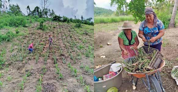 de sus experiencias académicas en Oaxaca, decidió regresar a su hogar, Sinanché, para crear el colectivo Suumil, en el que, a través de los saberes de sus abuelas y abuelos, recupera la tierra gastada por el henequén, en un solar en su casa y la milpa en el ejido.