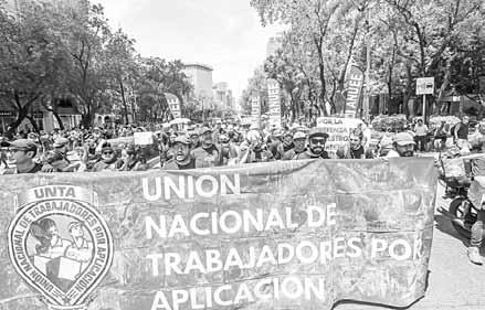 ▲ Como parte de las movilizaciones por el Día del Trabajo, organizaciones agrupadas en la Nueva Central de Trabajadores marcharon del Ángel de la Independencia al Monumento a la Revolución. En el Zócalo se unieron repartidores de aplicaciones,