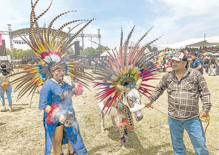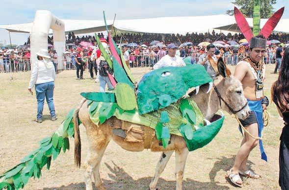 ▲ Más de 10 mil personas acudieron a la localidad mexiquense, la cual realiza la festividad cada primero de mayo. La feria, considerada entre las más extrañas del mundo, tiene varias actividades, entre ellas la de asnos disfrazados (en la imagen, de Quetzalcóatl), juegos de polo,