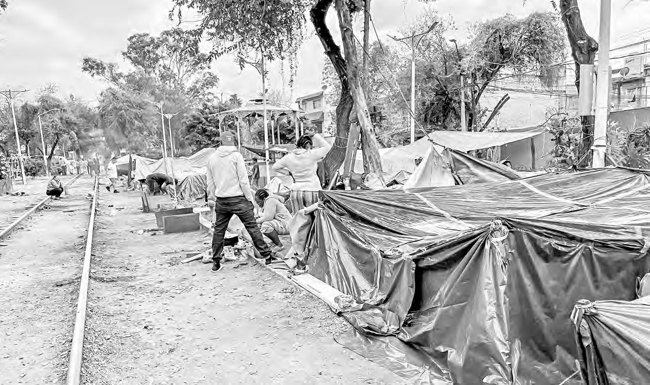 Decenas de migrantes continúan acampando a un lado de las vías del tren y calles aledañas en la colonia Vallejo, en la alcaldía Gustavo A. Madero. Foto Roberto García Ortiz