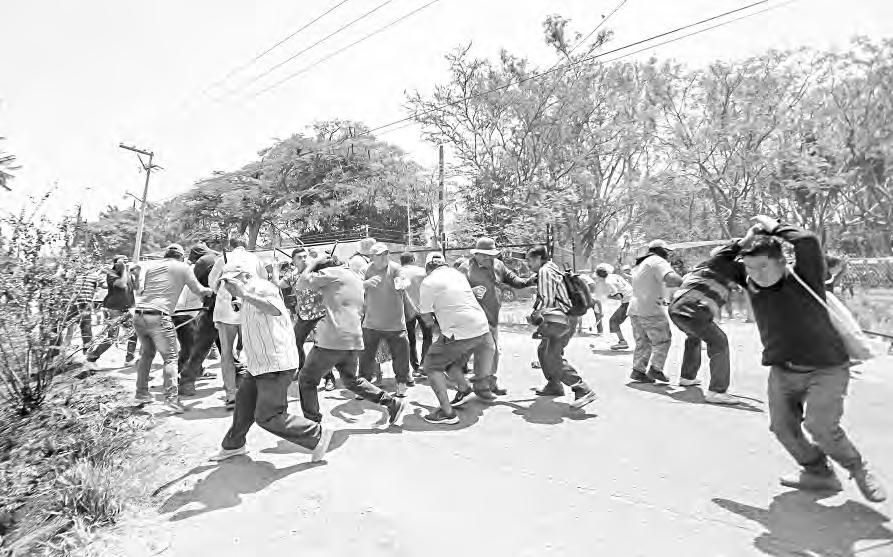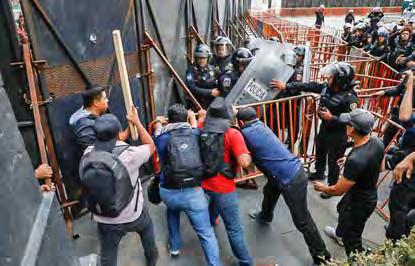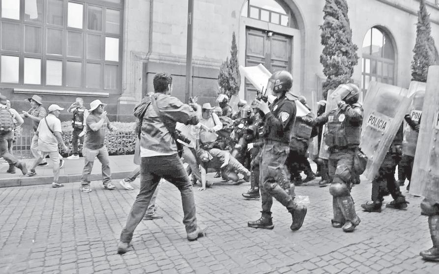 t Integrantes de la CNTE se enfrentaron con policías que resguardaban Palacio Nacional, luego de conocerse que maestros fueron agredidos por colonos y transportistas durante su bloqueo al aeropuerto de Oaxaca; el reporte es de siete heridos. Foto Jorge P. García. l. Poy y J. Pérez / P 10