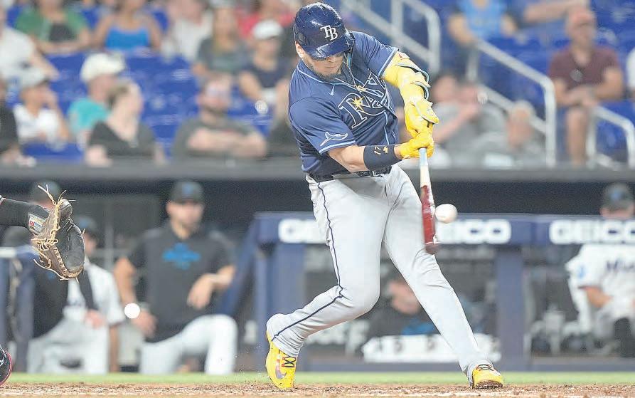 ▲ El mexicano Isaac Paredes ayer remolcó dos anotaciones con los Rays de Tampa Bay, que se impusieron 9-5 a los Marlines de Miami. Acostumbrado a poner en aprietos al pitcheo, el