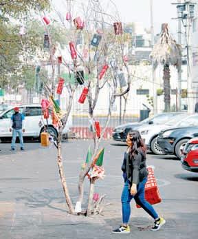 En las calles Acoxpa y Hacienda Totoapan de la colonia Prados Coapa Segunda Sección, vecinos colocaron en una coladera, a la que fue robada la tapa tres meses antes, un árbol con motivos navideños, en protesta porque la alcaldía Tlalpan de la Ciudad de México no resolvió el problema. Foto Alfredo