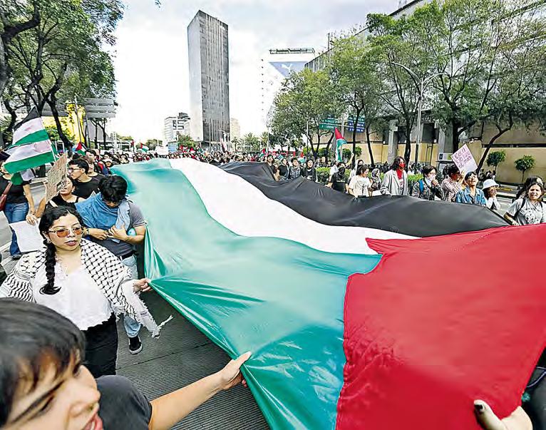Unas 2 mil 500 personas se movilizaron hasta la embajada de Estados Unidos, donde convocaron a un boicot nacional para romper “todo vínculo” con Israel. También hubo protestas en Oaxaca y Morelos. Foto Germán Canseco B. PETRICH, A. SÁNCHEZ, E.OLIVARES, A URRUTIA, L. HERNÁNDEZ, K. RUIZ, CORRESPONSALES Y AGENCIAS / DEPORTES, P 4 A 8