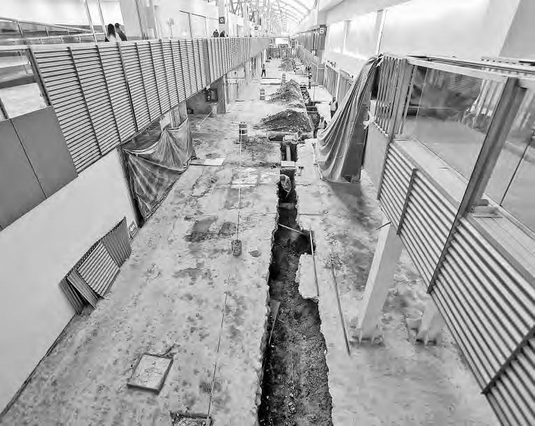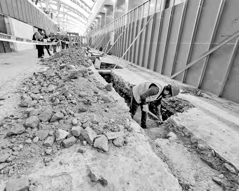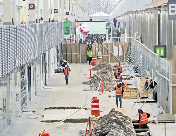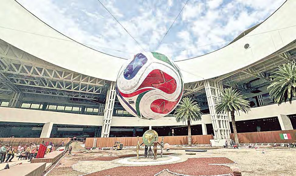 Con una inversión que ascenderá a más de 9 mil 500 millones de pesos autogenerados, el aeropuerto capitalino está en transformación “no sólo en el aspecto estético, sino funcional”. En la imagen de arriba, trabajadores pasan frente a la versión gigante del balón Trionda, realizada por el mexicano Édgar Palafox. Fotos Germán Canseco G. CASTILLO Y E. PALMA / P 11 Y DEPORTES