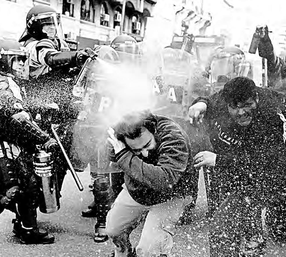 La ciudad de Buenos Aires fue ayer testigo de dos hechos bochornosos. En el Congreso de la Nación, diputados que hace pocas semanas votaron a favor de una mísera mejora del haber de los jubilados, debido a la traición y repliegue de varios diputados del radicalismo (centro derecha) y abstenciones de otras fuerzas, apoyaron con su voto el veto presidencial a la decisión anterior. Mientras, en la Plaza de la República, frente al Congreso, los jubilados en protesta por el maltrato al que son sometidos fueron brutalmente reprimidos (gases en los ojos, balas de goma y consecuentes heridos, palazos, empujones, atropellamiento de una mujer por una de las motocicletas policiales) por un enorme operativo (al menos mil efectivos) de la Policía Federal Argentina, Gendarmería Nacional y Prefectura Naval Argentina, fuerzas dirigidas por el Ministerio de Seguridad, a cargo de Patricia Bullrich, fiel instrumento del Estado prácticamente dictatorial del régimen de