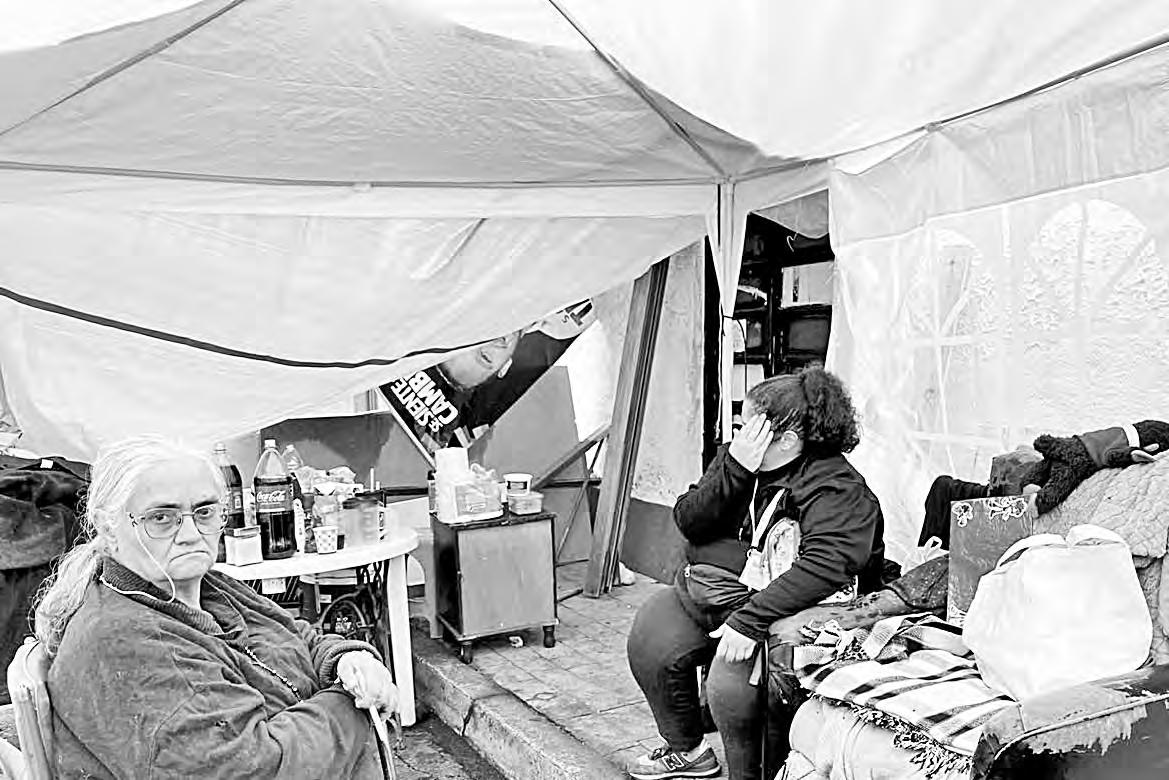 ▲ La señora Gloria permanece afuera del inmueble que habitó por casi cinco décadas en espera de solución. Foto Ángel Bolaños