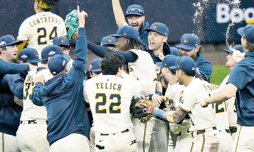 ▲ Con la victoria, la novena de Wisconsin dejó atrás su reciente historia de frustraciones en postemporada. Foto Ap
