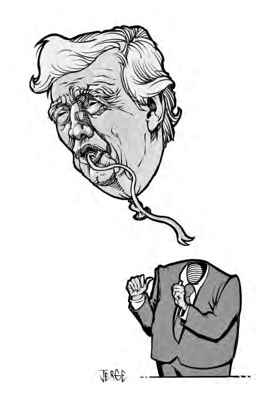 con la seguridad fronteriza y sin que nadie le formulara una pregunta al respecto. En este sentido, podría tomarse como una muestra más de la puerilidad de quien padece una incontrolable dependencia del autoelogio y no puede vencer su necesidad de inventar éxitos que no ha cosechado y admiraciones que no recibe, incluso cuando la mentira es tan burda que no hace sino ponerlo en ridículo. Asimismo, puede interpretarse que esta tendencia a fanfarronear se exacerba en momentos en que su gobierno hace agua, con un rechazo de 60 por ciento de los ciudadanos, de acuerdo a los últimos sondeos de opinión, una tasa de inflación que comienza a reflejar el impacto de su delirio arancelario, unas cifras de desempleo que desmienten de forma contundente la imaginaria creación de “millones y millones” de puestos de trabajo gracias a su guerra comercial unilateral, un déficit fiscal no visto en ocho décadas, y una pérdida de influencia global que se acelera conforme el republicano se empeña en humillar a aliados tan cercanos y fieles como la Unión Europea, Japón y Corea del Sur.