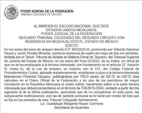AVISO NOTARIAL 1/2 Licenciado MAURICIO MONTOYA MANZO, Notario Público Número 169 del Estado de Michoacán, hago saber para los efectos del Artículo 160 de la Ley del Notariado para el Estado de Michoacán, que en escritura pública número 7,165 volumen 145 de fecha 24 de noviembre del 2023 ante mí: 1.- Se inició la Tramitación Extrajudicial a bienes de la Sucesión Intestamentaria del señor FERNANDO GARCÍA GONZÁLEZ. 2.- La señora SUSANA ROSAS RODRÍGUEZ cónyuge del autor de la sucesión: del de cujus. b) Acreditó el carácter de cónyuge legítima. c) Se acreditó el último domicilio del de cujus, el ubicado en la calle José María Cázares número 21, colonia Centro, de esta ciudad de La Piedad, Michoacán. d) No se cauciona el cargo de Albacea por ser única heredera. 3.- Se llevó a cabo la información testimonial de la señoras JUANA HERNÁNDEZ CERVANTES y FABIOLA YAZMIN SOLORZANO MAYA. 4.- La señora SUSANA ROSAS RODRÍGUEZ se reconoció el carácter de única y universal heredera y expresamente aceptó la herencia que le corresponde en la Sucesión. 5.- En virtud de ser la señora SUSANA ROSAS RODRÍGUEZ única y universal heredera en la presente sucesión, conviene en asumir el cargo de ALBACEA DEFINITIVA de la misma, manifestando que con tal carácter procederá a la formulación del inventario y avalúos del acervo hereditario. La Piedad, Michoacán, a 01 de marzo de 2024. LICENCIADO MAURICIO MONTOYA MANZO Notario Público Número 169 del Estado de Michoacán R.F.C. MOMM-710913-D2A. AL MARGEN UN SELLO CON EL ESCUDO NACIONAL QUE DICE: ESTADOS UNIDOS MEXICANOS, PODER JUDICIAL DE LA FEDERACIÓN EDICTO DE NOTIFICACIÓN JUZGADO DÉCIMO PRIMERO DE DISTRITO EN MATERIA CIVIL EN LA CIUDAD DE MÉXICO. INTEGRANTES DE LA COLECTIVIDAD REPRESENTADA POR LA “PROCURADURÍA FEDERAL DEL CONSUMIDOR”. En los autos de la acción colectiva –individual homogénea- 299/2022, “Procuraduría Federal del Consumidor” demandó a “Taboazas”, sociedad anónima de capital variable, las prestaciones que indicó en dicho ocurso, misma que fue admitida en proveído de seis de