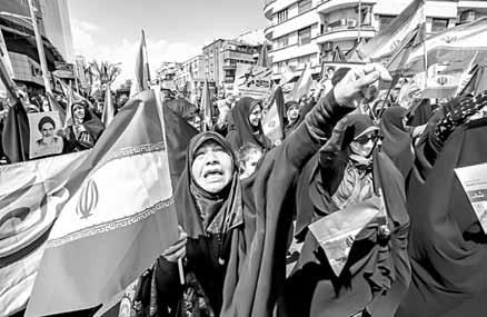 pronunciado oficialmente sobre esa ofensiva y estados Unidos aseveró estar concentrado en una “desescalada” en la región. en la imagen, manifestantes en Teherán agitan banderas de Palestina e irán después de la oración del mediodía del viernes. Foto afp agenciaS / P 21 y 22