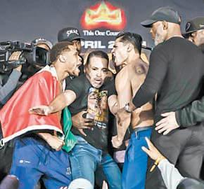 ▲ Salida de los tres aspirantes presidenciales tras sus discursos en la expo Mundo imperial, en la zona diamante de acapulco,