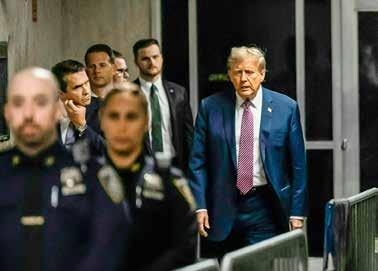 t el ex presidente donald Trump sale de la sala del tribunal penal de Manhattan, donde enfrenta un juicio por un supuesto pago no declarado a la ex actriz de cine porno stormy daniels. Un panel de 12 jueces prestó juramento ayer. afuera, un hombre se inmoló y quedó en estado crítico. Foto afp agenciaS / P 24