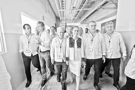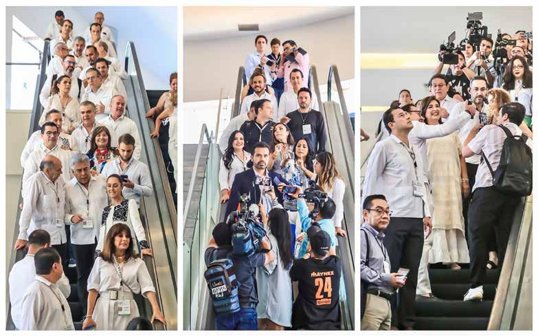 Guerrero, donde se realizó la 87 Convención bancaria, seis meses después del paso del huracán Otis a la izquierda, algunos directivos acompañan