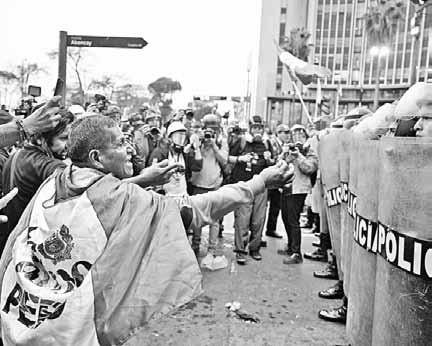 de seis detenidos. También reiteraron su demanda de elecciones anticipadas y una nueva Constitución. En la capital peruana, epicentro de la marcha, los edificios públicos fueron protegidos con rejas metálicas. Foto Ap. AGENCIAS / P 25