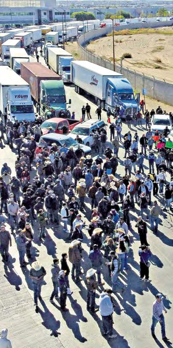 Productores agrícolas de Chihuahua bloquearon las entradas a las oficinas de la aduana mexicana en Ciudad Juárez y obligaron a los trabajadores a desalojar las instalaciones; también bloquearon el paso de tráileres en los puentes internacionales Córdova-Las Américas, Zaragoza y en la garita Santa Teresa. Los manifestantes advirtieron que mantendrán las protestas hasta que la Secretaría de Gobernación federal atienda los cinco puntos de su pliego petitorio, relacionados a programas de apoyo, créditos, precios de garantía para las cosechas y la nueva Ley General de Aguas. La toma de la oficina contigua al puente Córdova-Las Américas, la efectuaron ayer a las 9 horas unos 200 agricultores del Frente Nacional para el Rescate del Campo Mexicano y de Agrodinámica Nacional, encabezados por los dirigentes Eraclio Rodríguez Gómez y Arturo Rentería Duarte. Dos horas después, productores de la colonia LeBarón cerraron el tránsito de camiones en el puente internacional Zaragoza, y durante la tarde agricultores del municipio de Ascensión bloquearon el paso en la garita San Teresa, conurbada a Ciudad Juárez, y en la frontera entre Chihuahua y Nuevo México.