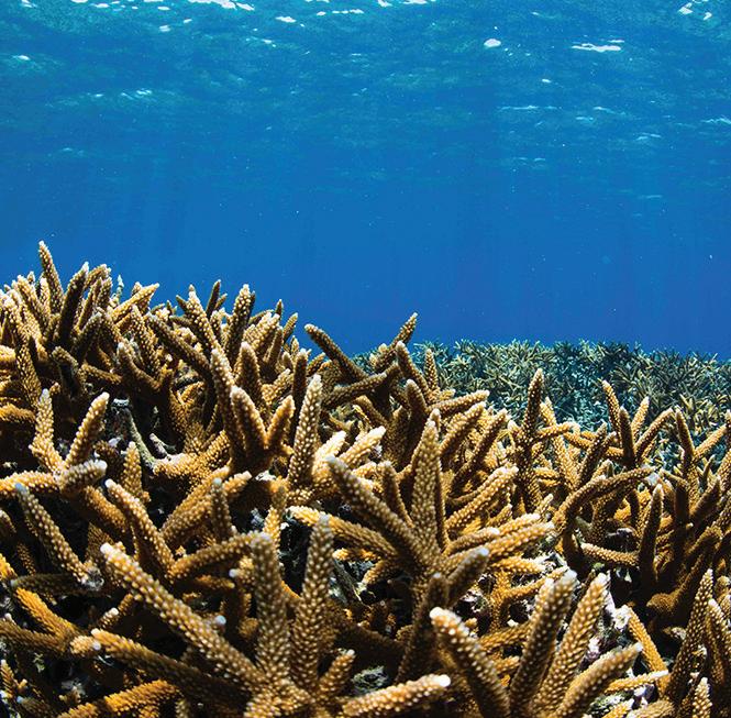 Los arrecifes coralinos son reconocidos mundialmen te como uno de los ecosis temas marinos de mayor re levancia. ¿En qué radica su importancia? Por una parte, son fundamentales para la biosfera ya que en ellos habi ta una alta variedad de espe cies con múltiples funciones ecológicas, como pueden ser la herbivoría o la bioerosión, las cuales son fundamentales para regular distintos proce sos como la competencia en tre corales y macroalgas, y la fijación de carbonatos.