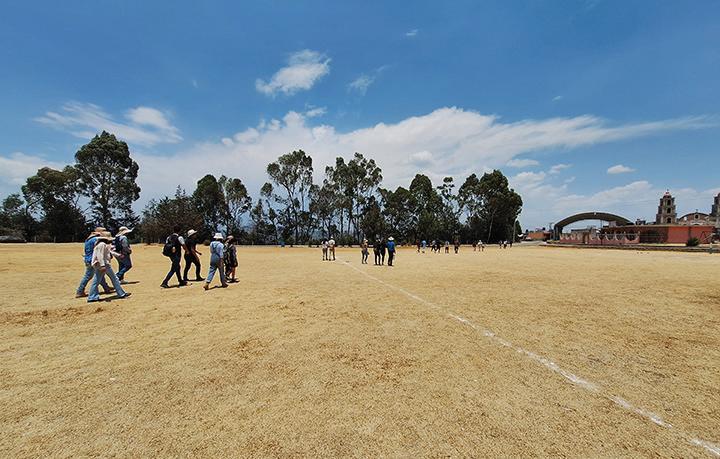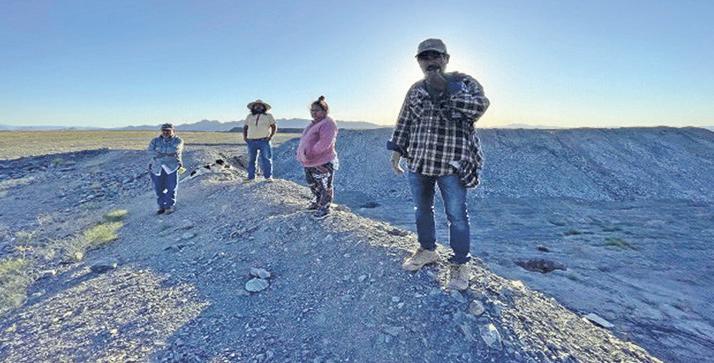 Ejidatarios de El Bajío sobre restos de roca triturada por Minera Penmont de Frensillo PLC