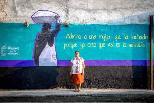 Las mujeres de Cher á n fueron desde el inicio piezas fundamentales en esta lucha contra la delincuencia y la explotación del bosque, lo son también en el rescate de la identidad, como ejemplo de ello tenemos al colectivo de jóvenas “Mujeres por la Memoria de Cherán”, quienes hacen una labor importante por rescatar los símbolos de resistencia y usan las paredes de su comunidad como un recordatorio visible de lo que se ha logrado hasta el día de hoy, gracias a la organización y dignidad comunitaria. En conmemoración del aniversario, esta colectiva realizó dos murales participativos junto con Amehd Coca Castillo, artista originario de Morelia que utiliza la técnica del fotomural como plataforma de denuncia ante las desigualdades y para fortalecer las luchas. Con esta acción se hizo referencia a la memoria insurrecta acompañada de imágenes y frases como: “Admiro a una mujer que ha luchado porque yo creo que así es la valentía” y “Traiciona nuestras raíces aquel que destruye los saberes del bosque”.