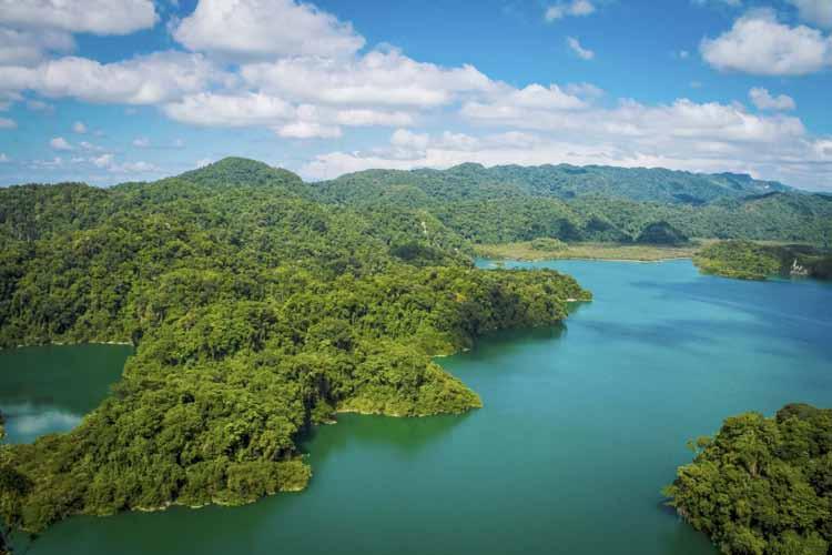En el cielo azul tucanes y quetzales vuelan por los cuatro puntos cardinales, formando una sinfonía de color y movimiento. El sol radiante baña la ciudad. Arriba en la entrada principal del Palacio, hacia el oriente, donde cada amanecer los Ajmen ofrendan pom, se alcanzan a ver las montañas entrelazadas rodeando el lugar. Algunos niños juegan por las escalinatas, otros caminan tomados de la mano de sus madres, acompañándolas al Ch’ivit na, a pedir autorización para acomodar productos en el tianguis; suben y bajan los j-ab-teletik jnitvanejetike de Balamtun, ocupándose de las actividades del día.