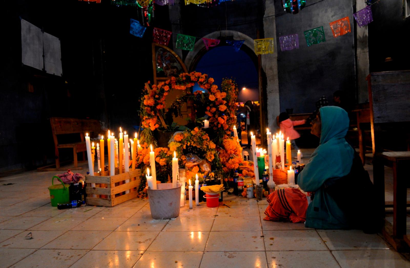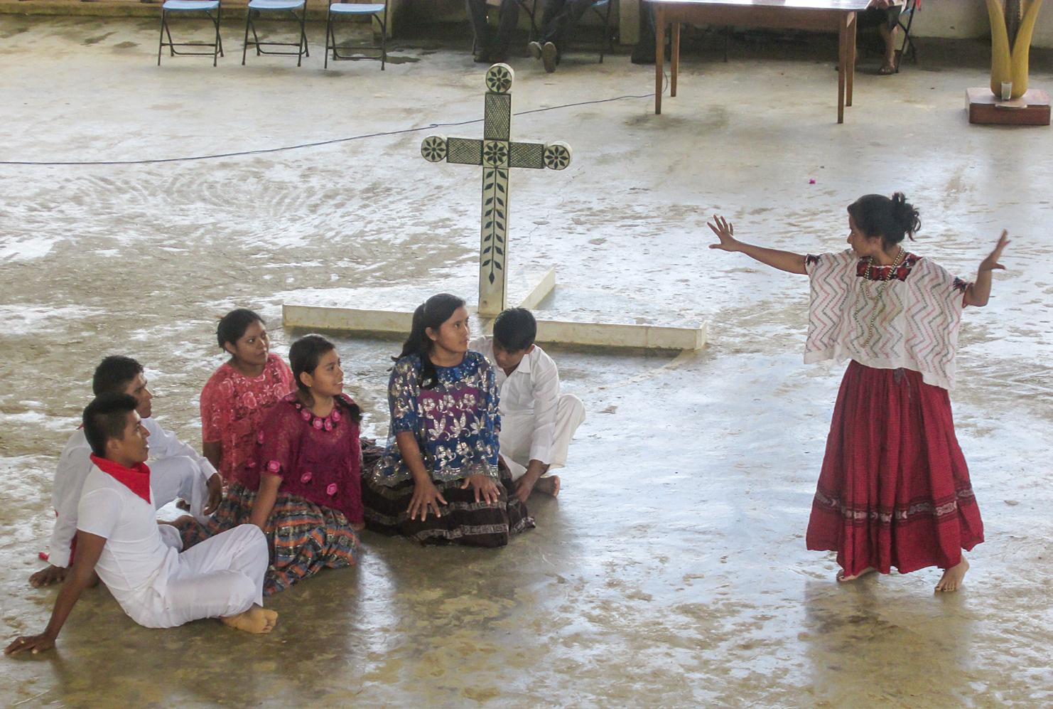 Una breve peregrinación llegó hasta el altar maya adornado con frutas y velas, donde destacaba detrás de una cruz, la escultura campechana de un Tatic con gorra que miraba hacia el infinito. Luego de la apertura los mil doscientos asistentes, casi todo indígenas chiapanecos, rezaron de rodillas cada quien en su lengua, formando una comunión de voces que susurraban plegarias formando una letanía circular que nos envolvía con el ternura de sus voces.