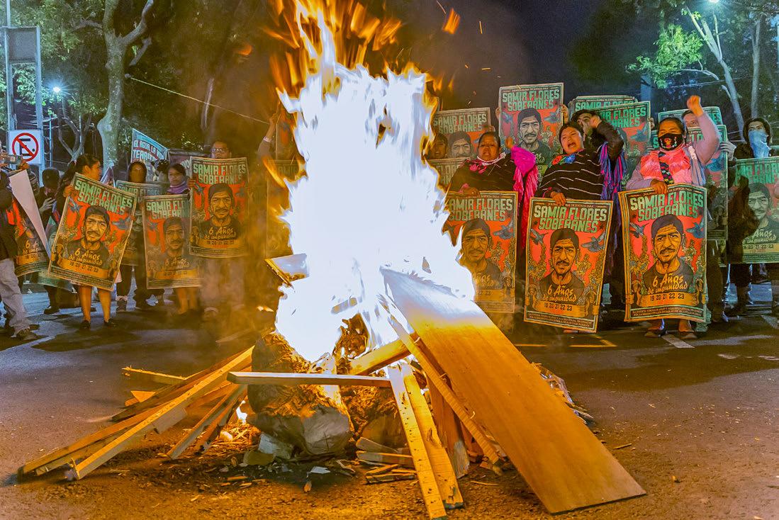 Miles de carteles con el rostro de Samir Flores Soberanes recorrieron este febrero plazas, universidades, centros sociales, pueblos, calles y festivales. La leyenda de la imagen realizada por el artista gráfico Gran Om representa el sentir y la consigna de las manifestaciones que se realizaron en más de cien ciudades del mundo: “La justicia vendrá de abajo y a la izquierda, en común. Por la reconstitución integral de nuestros pueblos”.