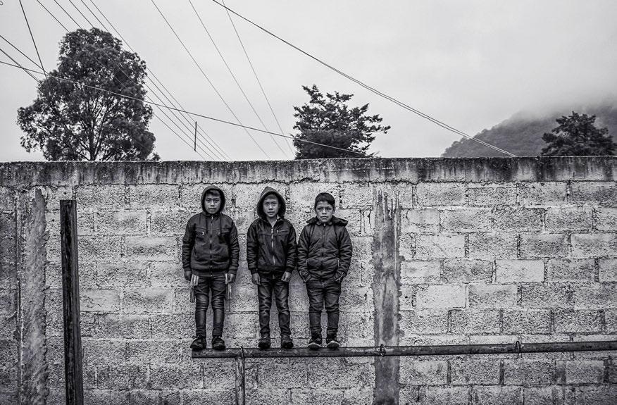 Tres niños que miran la fiesta, Zinacantán, Chiapas, 2025. Foto: Mario Olarte