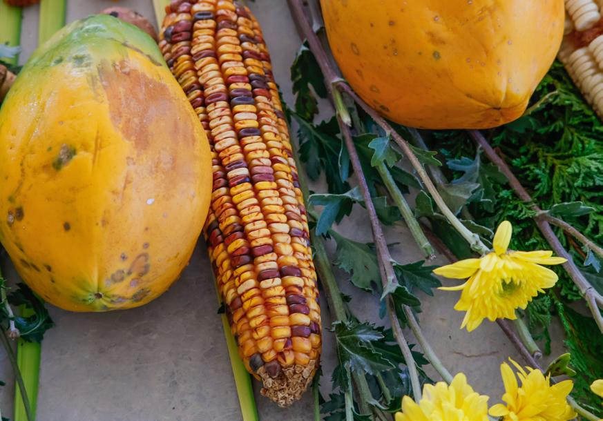 Orar, poner la ofrenda, bendecir las semías, barbechar, esperar el momento/ el tiempo pa’la siembra, cuidar la planta, pizcar, desgranar, tostar, moler el maíz rojo/azul para tomar en este Domingo de Ramos ¡un rico atole de pinole!