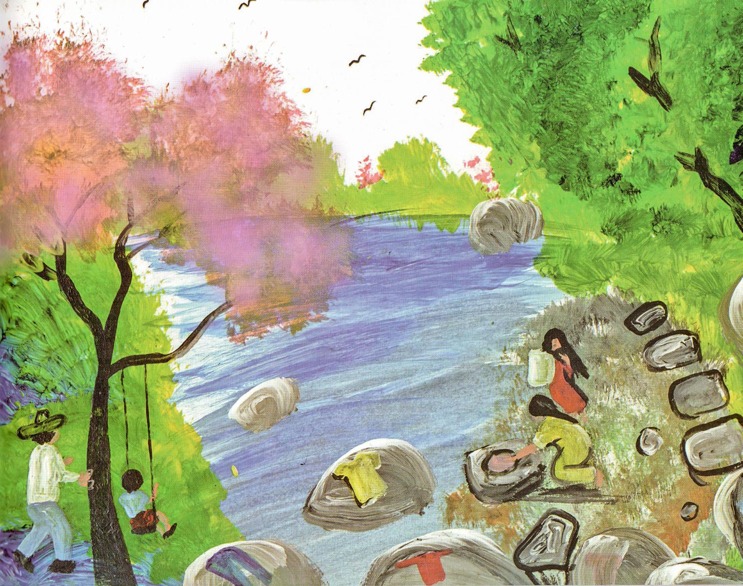 Los lavaderos. Ilustración de Edgar Cruz Méndez para el libro Ojún: del otro lado del agua