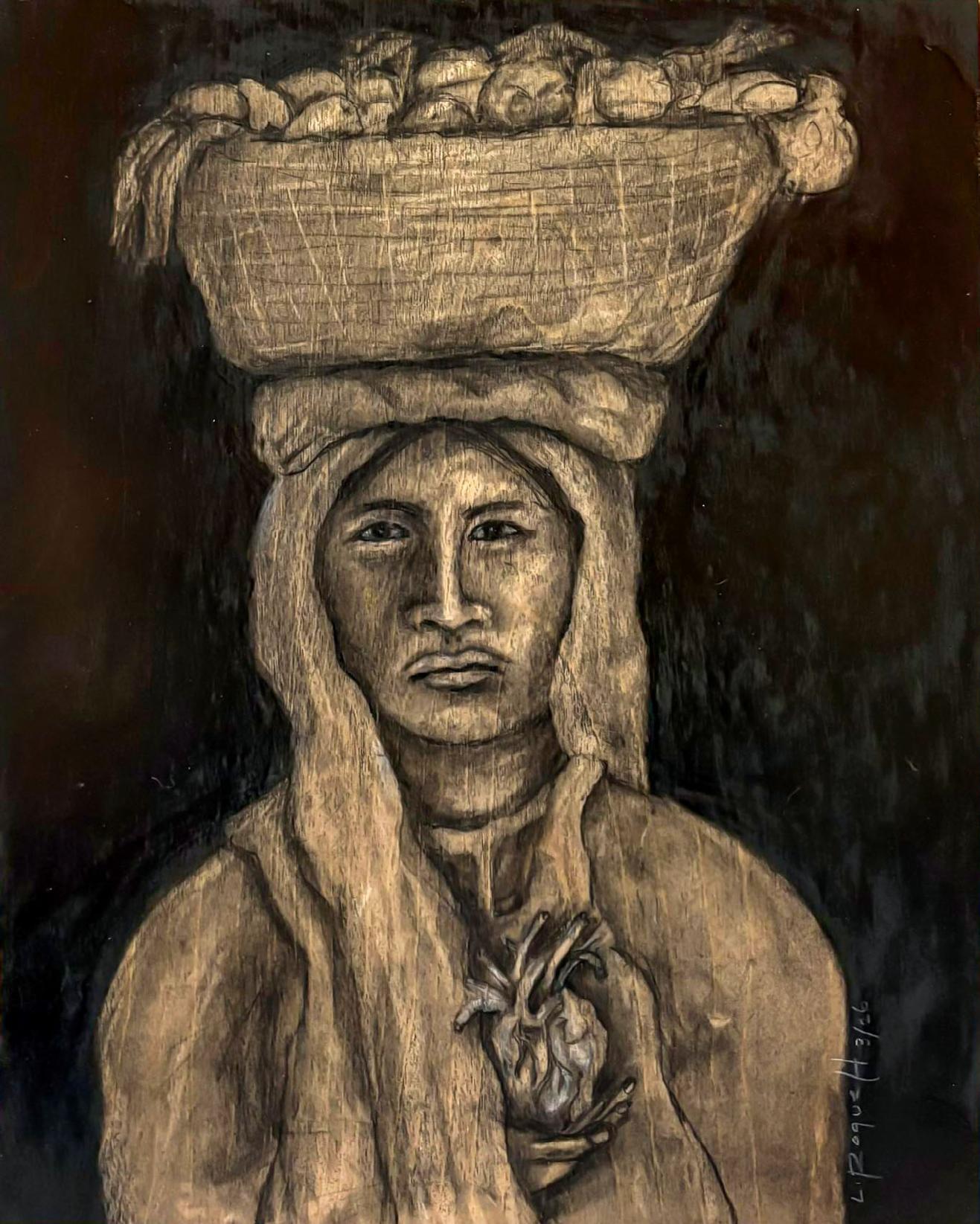 Trae en su espalda cicatrices de la vida, un manojo de leña, un ramillete de flores, unas frutas, unos sueños para venderlos en la plaza.