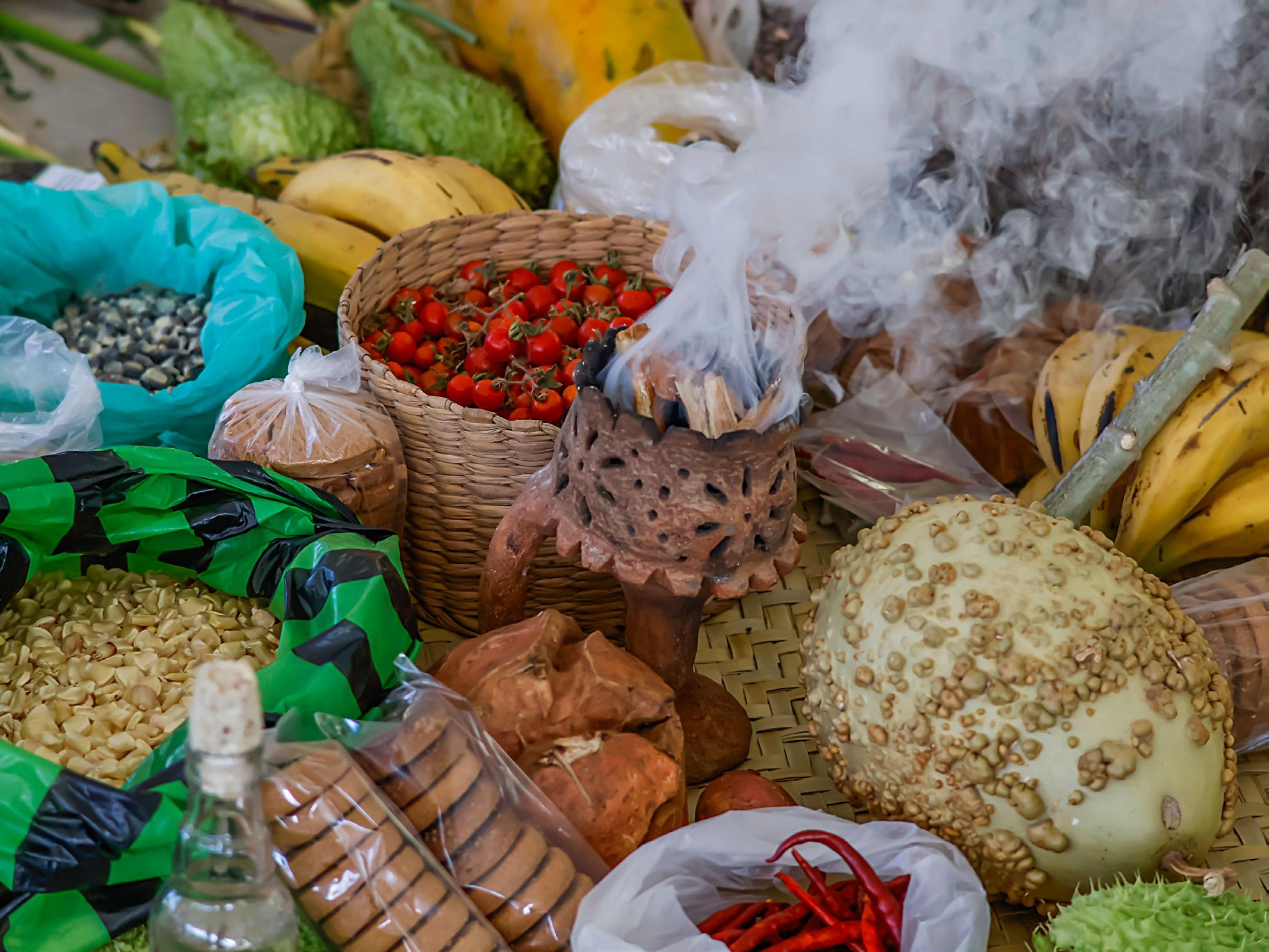 Detalle de la ofrenda, en la Asamblea de la Red en Defensa del Maíz, Cuatecomaco, Veracruz, marzo de 2026. Foto: Gerardo Magallón