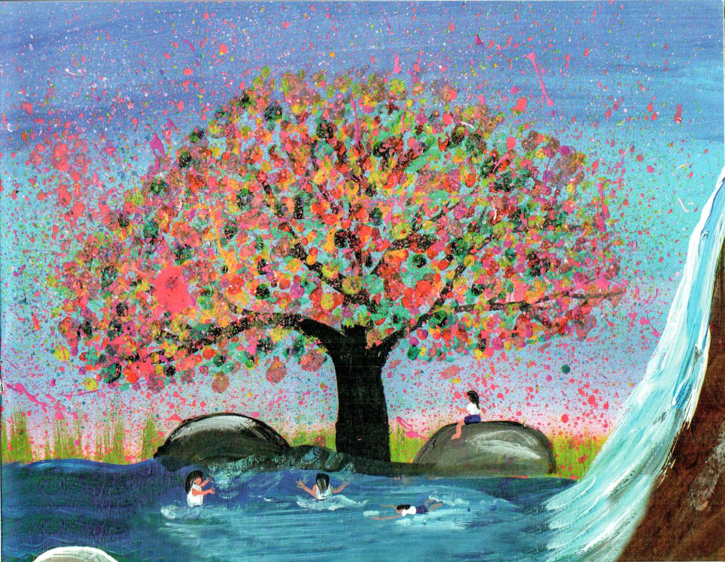 La cascada. Ilustración de Edgar Cruz Méndez para el libro Ojún: del otro lado del agua