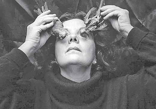 fotográfica realizada por la propia artista, se revela una mirada metafórica e intuitiva que mezcla el enfoque documental con la sensibilidad poética. El recorrido inicia con la fotografía de su boda, la única impresión a color de la muestra, intervenida por Francisco Toledo.
