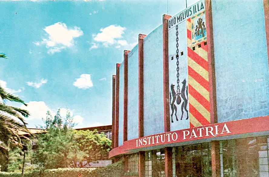▲ 1. Instituto Patria, en avenida Moliere, donde actualmente está El Palacio de Hierro. Foto: ca. 1968. 2. El libro de texto Lengua y literatura españolas, usado en muchas escuelas del país, es el único que Mauricio Brehm publicó en vida. 3. Libro póstumo de poesía de Mauricio Brehm, lleva en la portada un altorrelieve del artista de origen jesuita Mario Ávila.