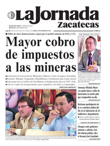 la Asociación de Municipios Mineros; freno al saqueo, demandan n Fresnillo, Mazapil, Vetagrande, Chalchihuites y Sombrerete dan el paso inicial n Urge poner fin al conflicto de San Martín, en huelga desde julio de 2007: Solís n Son ya 4 siglos de enriquecimiento para compañías y de daños a comunidades HUMBERTO CAZARES, CORRESPONSAL n