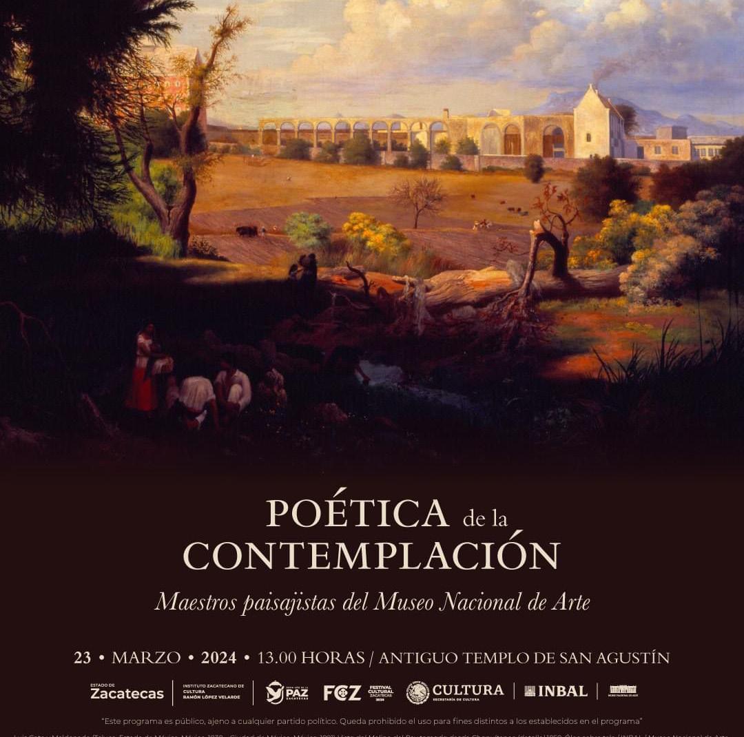 Esta semana continúa la apertura de exposiciones incluidas en el programa del Festival Cultural Zacatecas. El miércoles 20, a las 20:00 horas, El otoño recorre las islas, de Jesús Reyes Cordero, en la Galería Arroyo de la Plata. El viernes 22 se inauguran PreRuptura, de Humberto Márquez y Suite Messicana IV Mov, de efisionolu, a las 13 horas en el MAAMF; El esplendor de la arquitectura religiosa del centro y norte de México, de Sergio Saldívar Díaz, a las 18:00 horas, en el Museo Zacatecano; Naturaleza somos, de Gaby Suárez del Real, en la Galería Irma Valerio, a las 19:30 horas. sábado 23 de horas, en Antiguo Templo de San Agustín, la exposición Poética de la contemplación. Maestros paisajistas del Museo Nacional de Arte