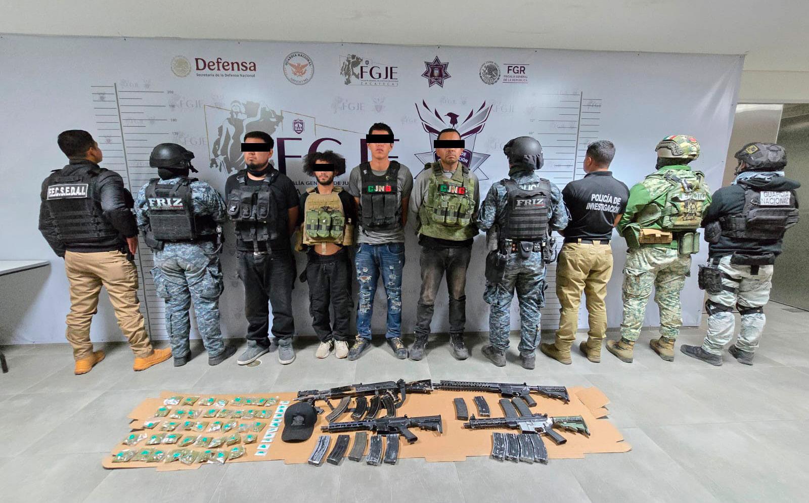 Luego de una agresión armada contra elementos de las Fuerzas de Reacción Inmediata Zacatecas (FRIZ), en la comunidad Aguacate de Arriba, en el municipio de Tabasco, los tres órdenes de gobierno detuvieron a cuatro masculinos presuntamente vinculados a una célula criminal.