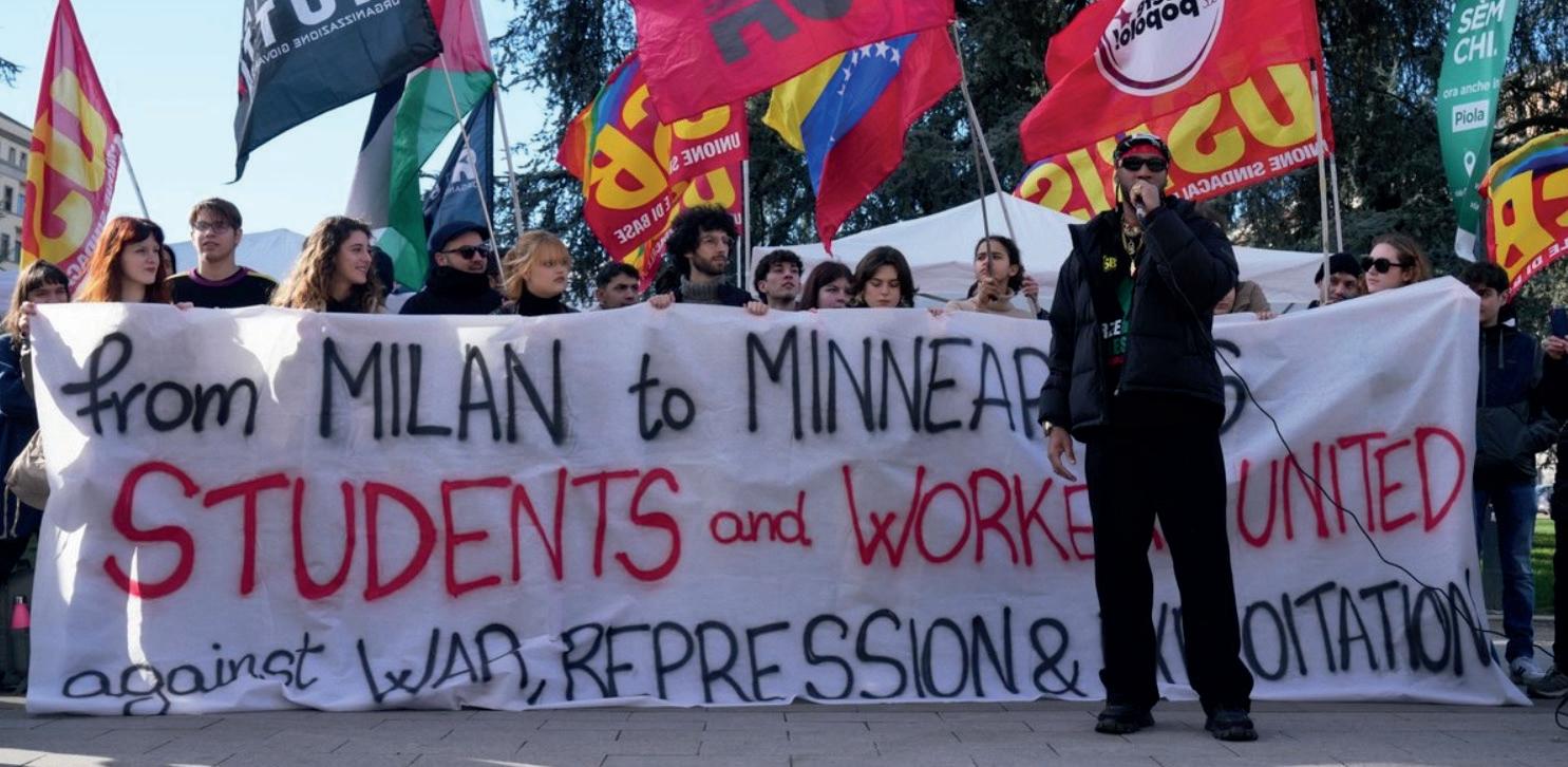 Estudiantes se reunieron este viernes para protestar contra agentes del Servicio de Inmigración y Control de Aduanas (ICE, por sus siglas en inglés) previo a la inauguración de los Juegos Olímpicos de Invierno en Milán-Cortina 2026. Docenas de jóvenes se congregaron en la plaza Leonardo da Vinci de Milán para manifestarse, soplando silbatos y gritando: “¡No queremos a ICE en nuestra ciudad!”, mientras marchaban bajo nubes de humo rosa. Foto: AP y cortesía