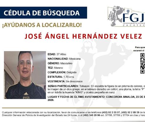 mediante los procedimientos oficiales. La familia del trabajador fue notificada y posteriormente realizó el reconocimiento correspondiente. José Ángel Hernández Vélez era originario del municipio de Cañitas de Felipe Pescador, Zacatecas. Desde hace aproximadamente 14 años vivía en la capital del estado, donde estudió Ingeniería Industrial en el Instituto Tecnológico Regional de Zacatecas.