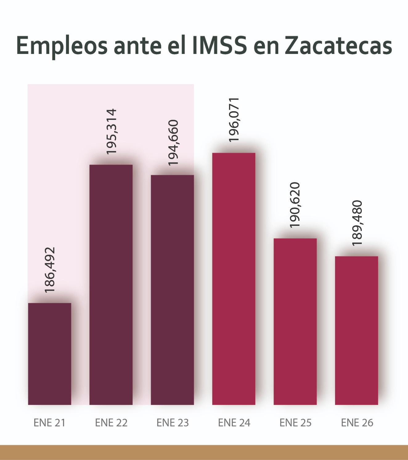 A la baja, el empleo en Zacatecas durante enero, revelan cifras oficiales del IMSS