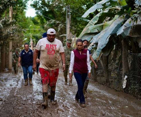 Para supervisar las labores de rescate y rehabilitación de las zonas dañadas por las recientes inundaciones, la presidenta Claudia Sheinbaum Pardo visitó los municipios de Poza Rica, Álamo Temapache y Tempoal, en el norte de Veracruz, acompañada por la gobernadora Rocío Nahle García. Foto: Cortesía