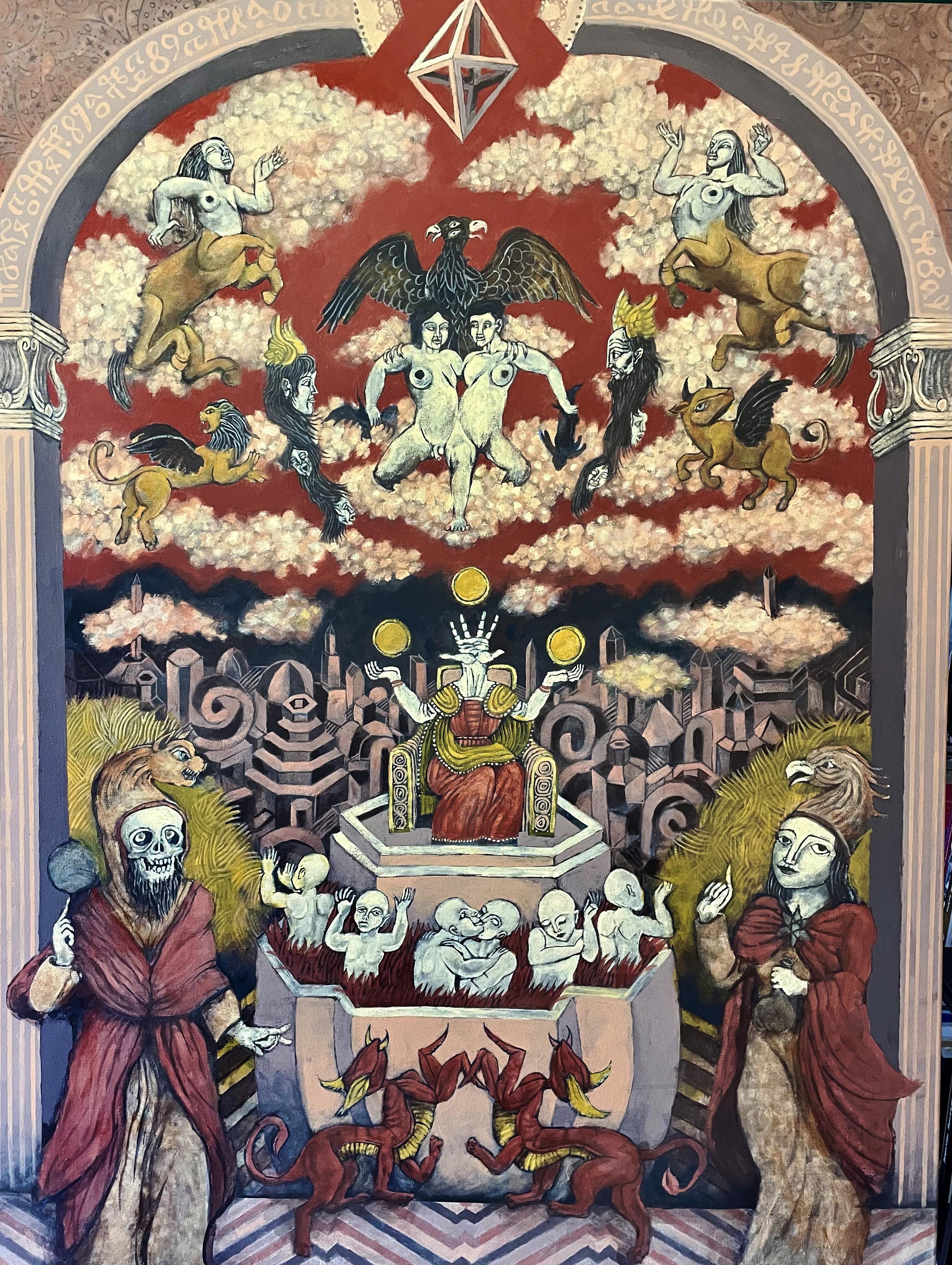 Durante tres años estuvo ideando, planeando y pintando estas piezas, pero también estuvo inmerso en un proceso en el que hizo que las palabras y la pintura fluyeran en un mismo sentido; me refiero no sólo a los textos que acompañan a los cuadros, sino a que en este mismo periodo estuvo concluyendo una novela.