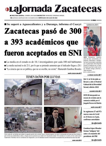 n DIRECTORA GENERAL: CARMEN LIRA SAADE n DIRECTOR: RAYMUNDO CÁRDENAS VARGAS n ZACATECAS, ZACATECAS l AÑO 16 l NÚMERO 6376 l MIÉRCOLES 6 DE JULIO DE 2022
