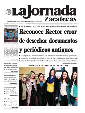 n DIRECTORA GENERAL: CARMEN LIRA SAADE n DIRECTOR: RAYMUNDO CÁRDENAS VARGAS n ZACATECAS, ZACATECAS l AÑO 5 l NÚMERO 5401 l VIERNES 15 DE MARZO DE 2019